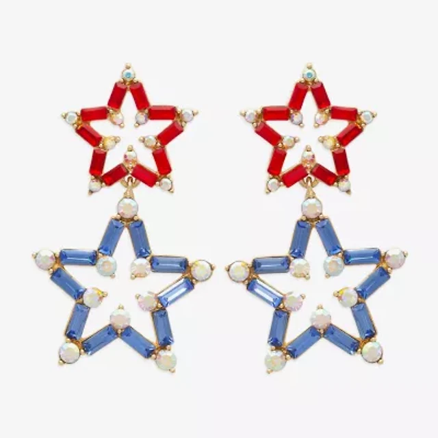 Bijoux Bar Gold Tone Womens Crystal Star Drop Earrings