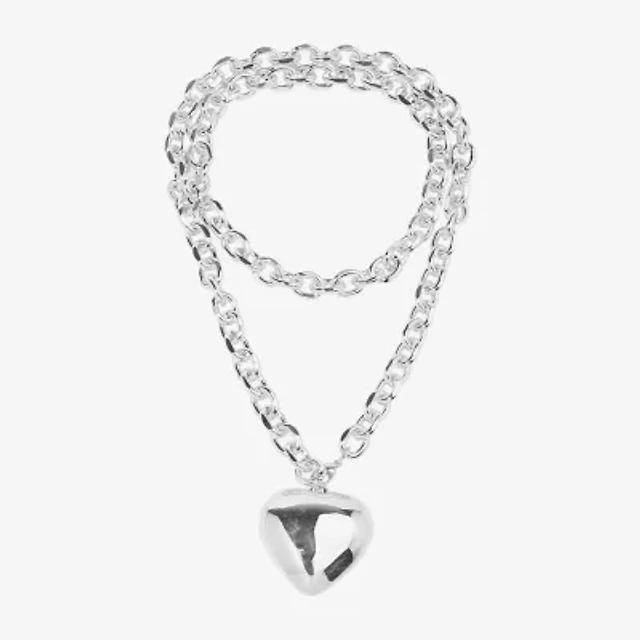 Bijoux Bar Silver Tone Womens Heart 32 Inch Pendant Necklace