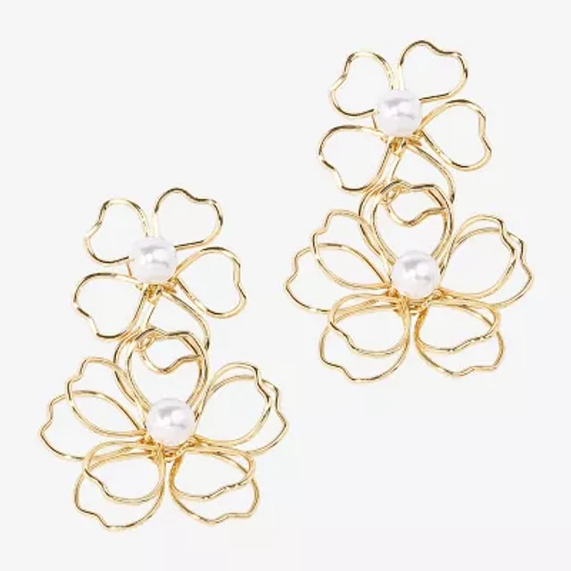 Bijoux Bar Womens Simulated Pearl Flower Drop Earrings