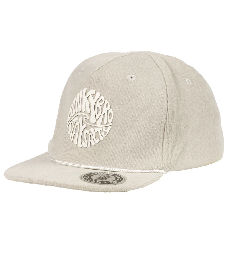 The Nayarit Snapback has a white BinkyBro logo on the front. All paneling is a really light grey corduroy. This hat features a grandpa rope across the front.This is a Non-structured hat. (Non-structured means the front paneling will not have a stiff webbing within it.) This will keep the hat softer than other hats we offer.This hat comes in an infant, toddler, youth, and adult size.