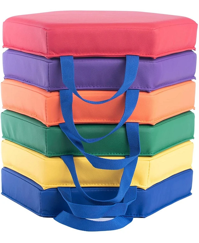 6 Pieces Multifunctional Hexagon Toddler Floor Cushions Classroom Seating with Handles