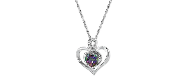 Birthstone Gemstone & Diamond Accent Heart Pendant Necklace in Sterling Silver
