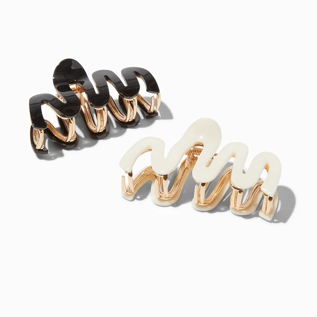 Black & Cream Squiggle Hair Claws - 2 Pack