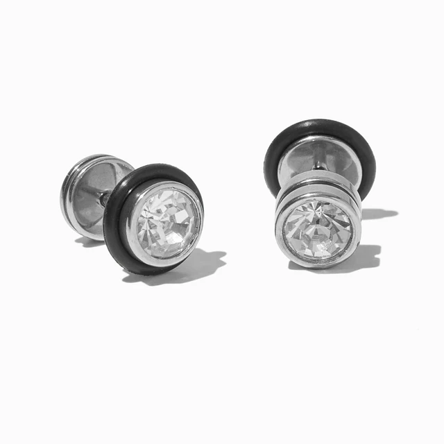 Silver-tone Stainless Steel Crystal Faux Taper Earrings