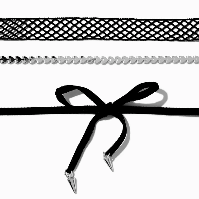 Black Edgy Bow Choker Necklaces - 3 Pack