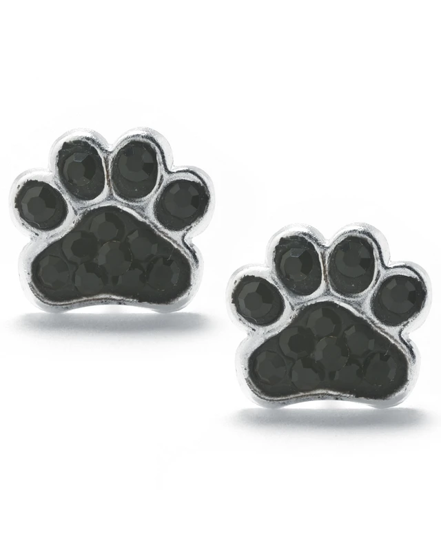 Jet Pave Paw Print Stud Earrings in Sterling Silver