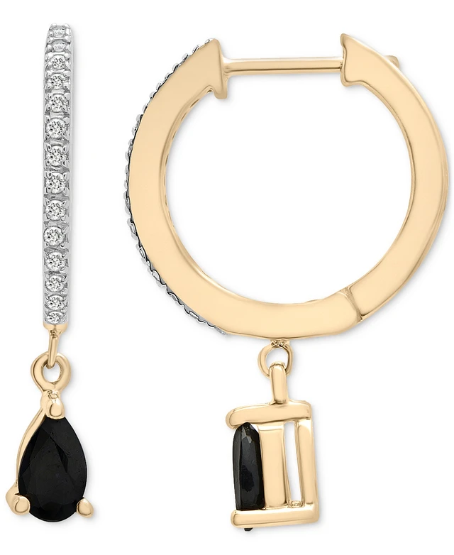 Black Sapphire (1/2 ct. t.w.) & Diamond (1/10 ct. t,w.) Dangle Hoop Earrings in 14k Gold-Plated Sterling Silver