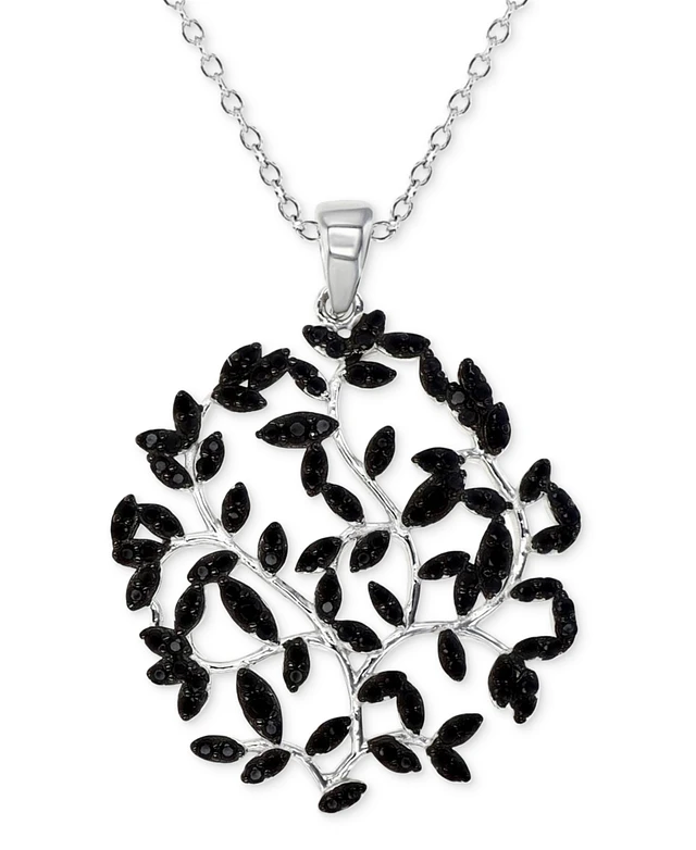 Black Spinel Vine-Inspired 18" Pendant Necklace (7/8 ct. t.w.) in Sterling Silver