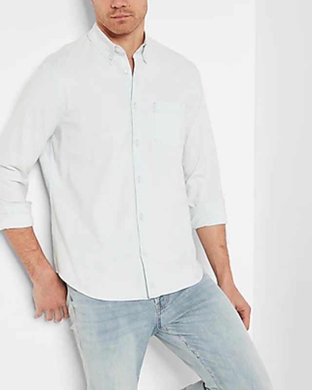 Bleach Light Wash Hyper Stretch Denim Shirt