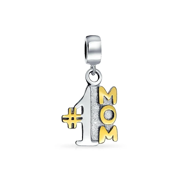 Bling Jewelry #1 Mom Dangle Charm Bead 14K Gold Plated Silver for Mother Wife Bracelet