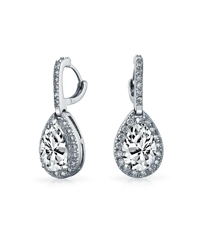 Bling Jewelry 7CT Style Halo Clear Cubic Zirconia Cz Fashion Formal Dangle Drop Teardrop Earrings Prom Rhodium Plated