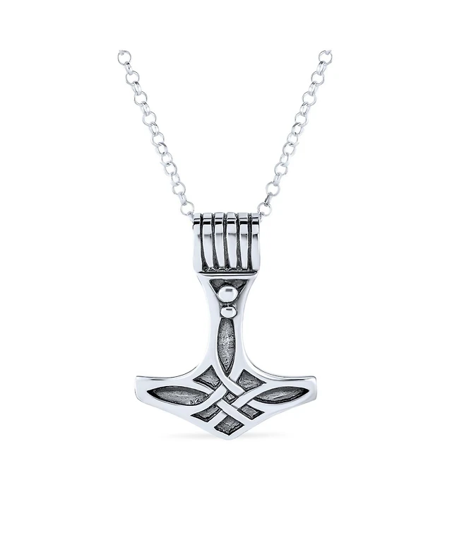 Bling Jewelry Amulet Celtic Knot Hammer Pendant Necklace For Women Oxidized Sterling Silver