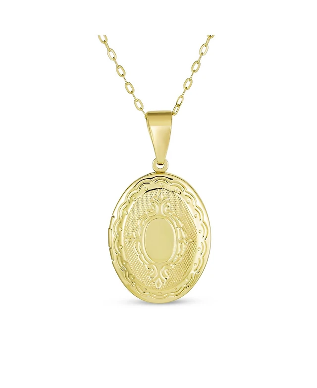 Bling Jewelry Antique Style Oval Locket Necklace Etched Leaf Scroll Gold Plated
