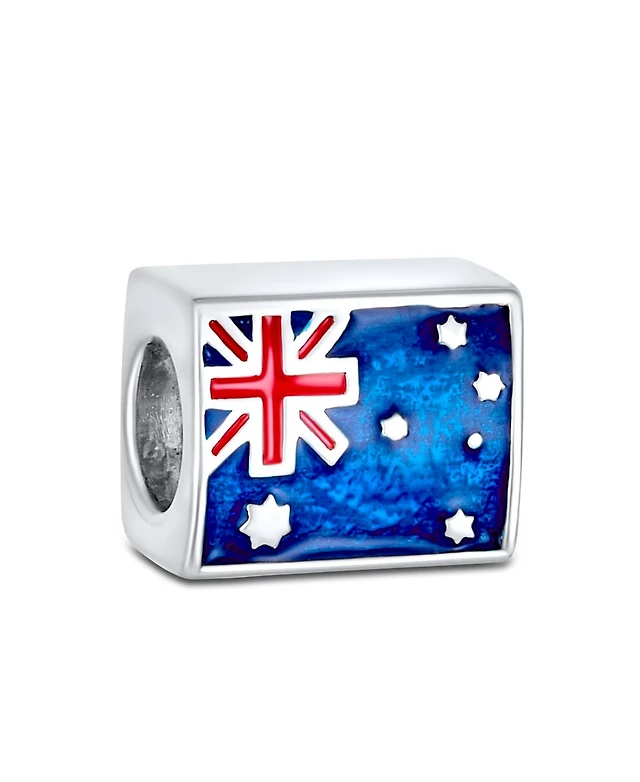 Bling Jewelry Australian Flag Charm Bead Sterling Silver European Bracelet - Red White Blue