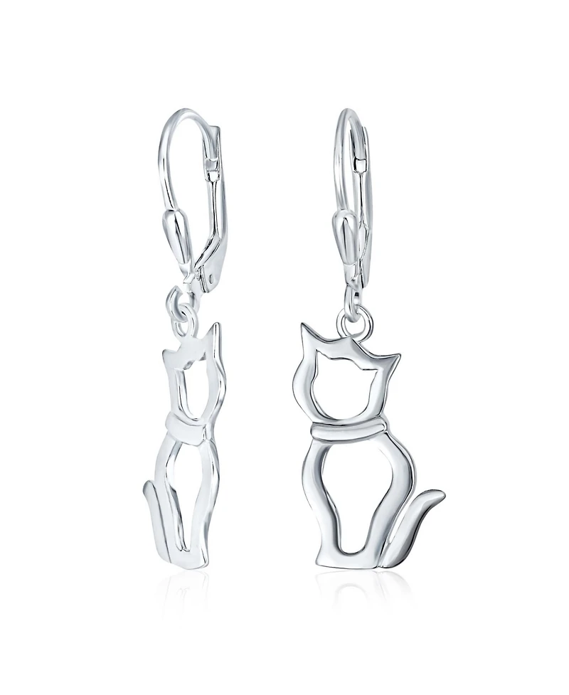 Bling Jewelry Best Friend Animal Lover Dangle Earrings Sterling Silver Cat Design