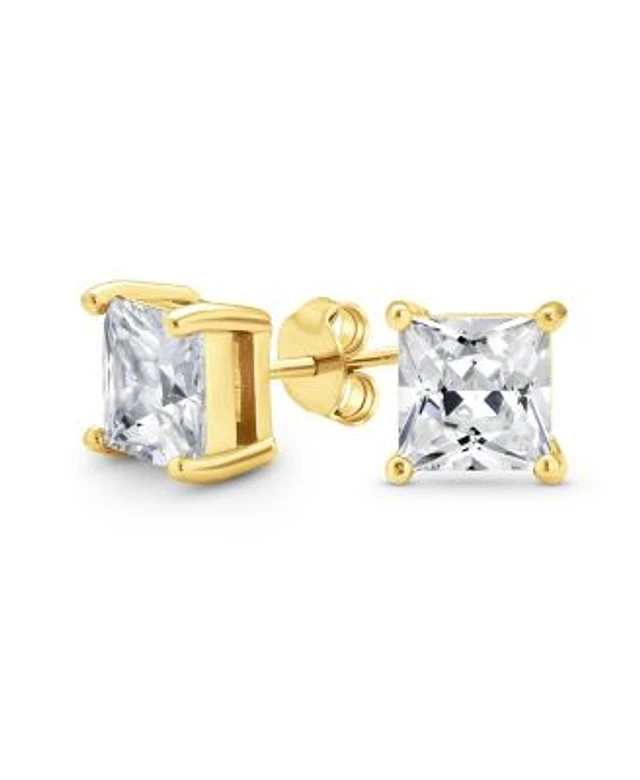 Cubic Zirconia Square Stud Earrings 14k Gold