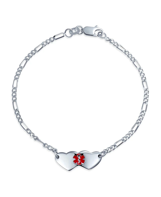Bling Jewelry Blank Dainty Connected Double Heart Shape Medical Identification Id Bracelet .925 Sterling Silver Small Wrist 6 Inch