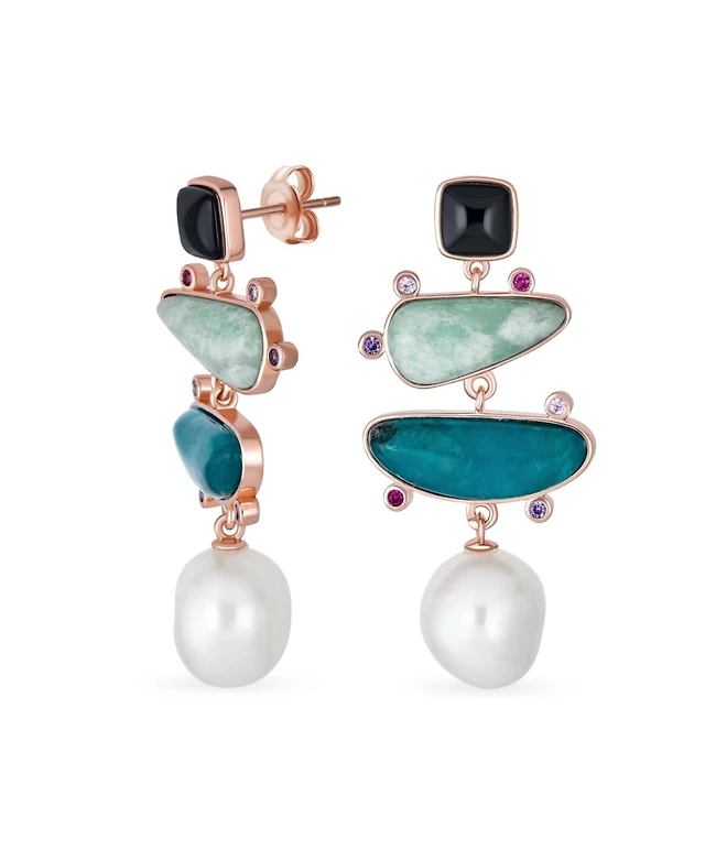 Bling Jewelry Boho Tri Tone Mixed Natural Apatite Freshwater Cultured Baroque Pearl Dangle Earrings