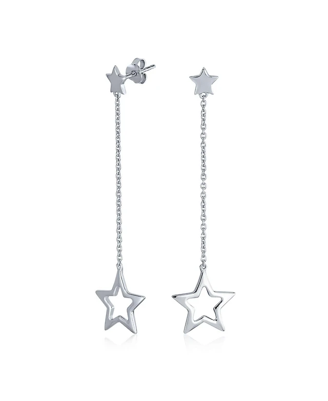 Bling Jewelry Celestial American Patriotic Usa Rock Star Chain Long Linear Dangle Open Star Earrings .925 Sterling Silver 2.5 Inch