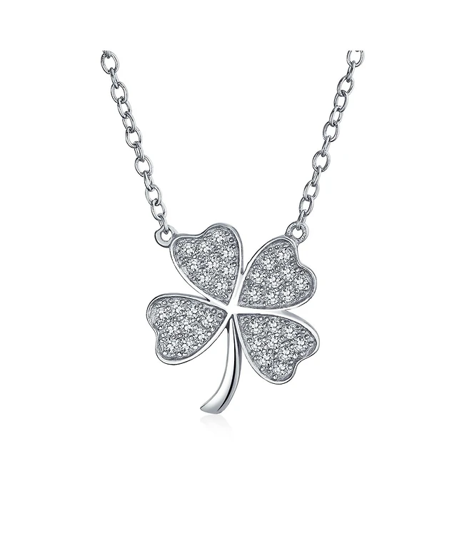 Bling Jewelry Good Luck Fortune Irish Shamrock Shape Lucky Charm Four Leaf Clover Pendant Necklace Sterling Silver