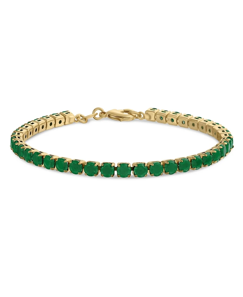 Elevate your style with this lightweight tennis bracelet featuring cabochon cut stones for a smooth, polished finish. The matte green hues and refined design make this classic bracelet truly enchanting. Adorned with richly vivid round CZs prong basket set , this piece adds a pop of color and holiday party style to any outfit. Perfect for a August birthday, this exquisite bracelet is a timeless choice.