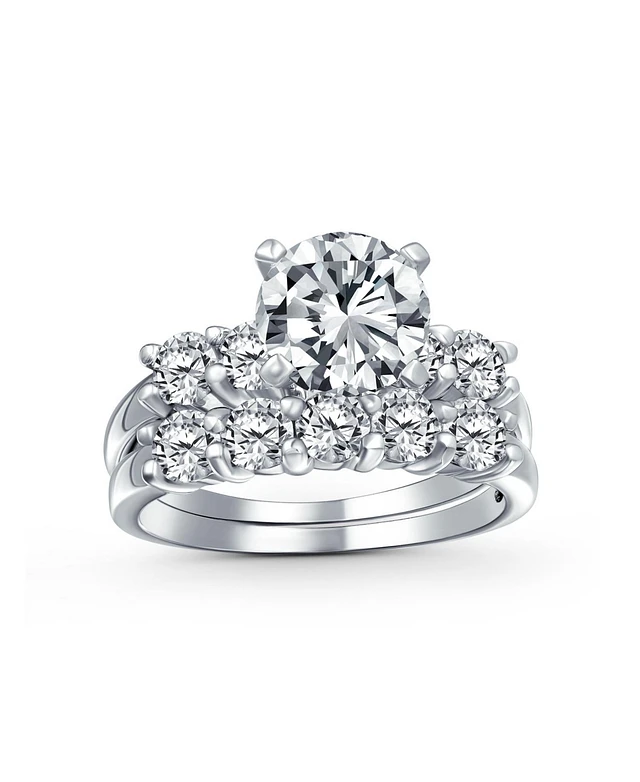 Bling Jewelry Classic 3.5CTW Round Solitaire Cz Side Stones Band Ring Set .925 Sterling Silver