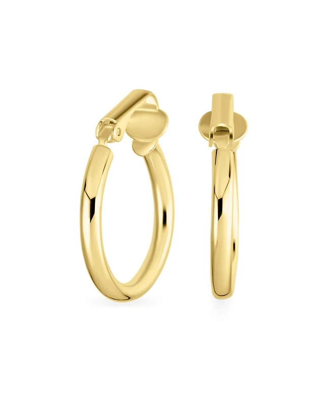 Bling Jewelry Classic Basic Simple Lightweight Clip On Hoop Earrings Non Pierced Ears Gold Plated Sterling Silver .75 Diameter