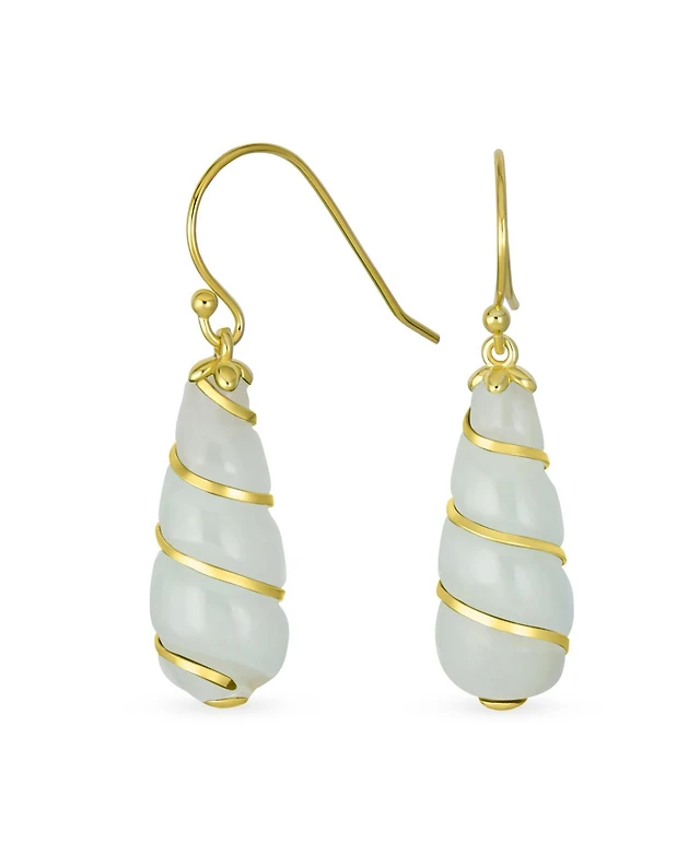 Bling Jewelry Classic Elegant Long Chandelier Natural Dark Green Jade Teardrop Dangle Earrings 14K Yellow Gold Overlay Twisting Swirl Accent .925 Ster