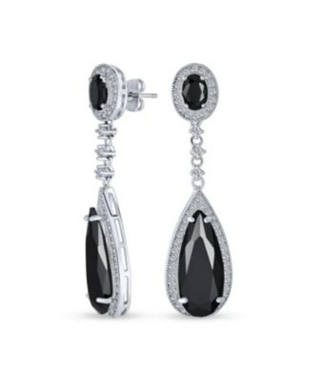 Bling Jewelry Classic Estate Jewelry Art Deco Style Halo Linear Long Cz Statement Dangle Teardrop Chandelier Earrings Prom Party Jewel Colors Silver Plated