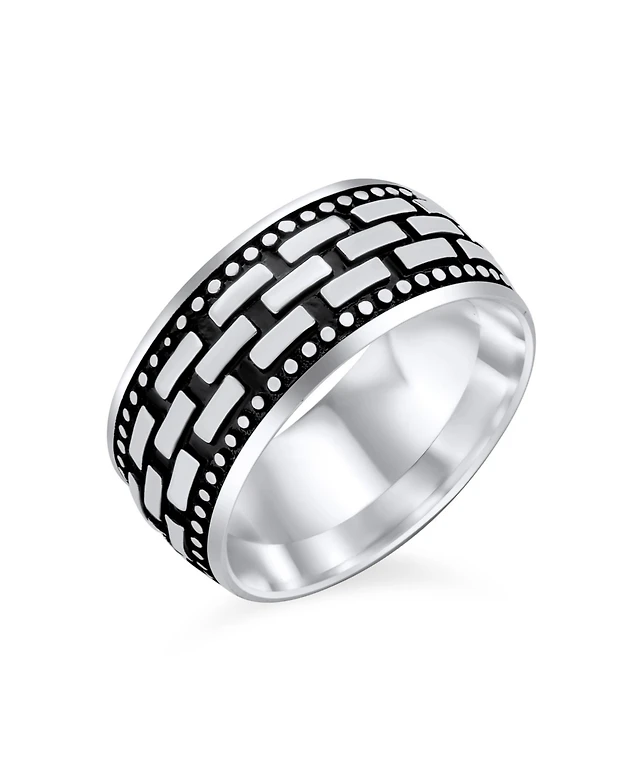 Bling Jewelry Classic Wide Brick Chain Ring Band Solid Blackened Oxidized .925 Sterling Silver Beaded Edge