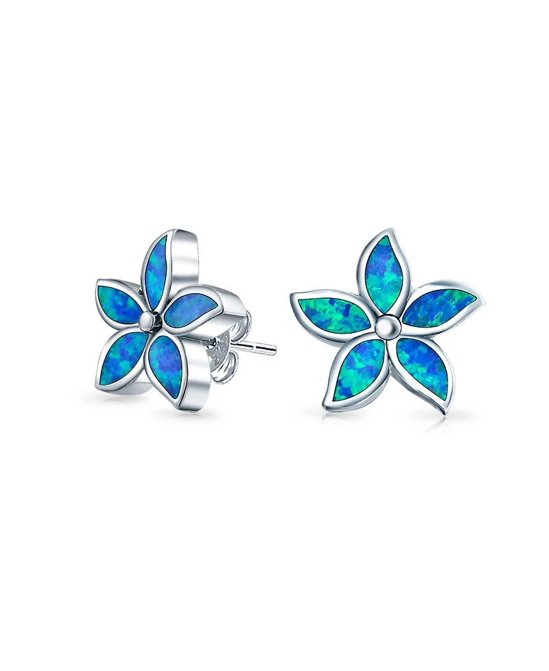 Bling Jewelry Created Blue Opal Inlay Petals Flower Stud Earrings .925 Sterling Silver in Ponce, PR