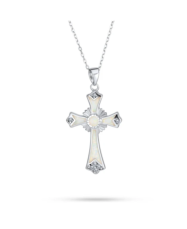 Bling Jewelry Silver Opal Cz Cross Pendant Necklace 18in Chain