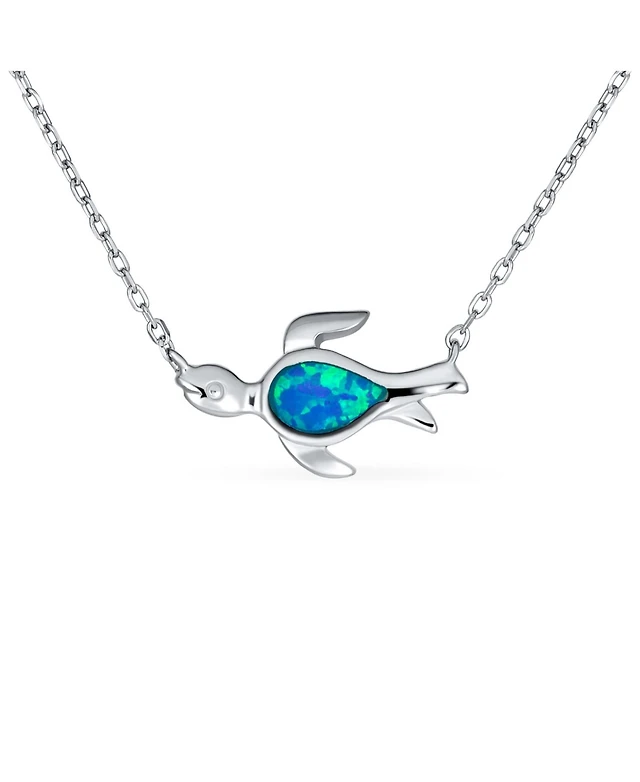 Bling Jewelry Delicate Nautical Blue Opal Sea Turtle Pendant Necklace in Sterling Silver