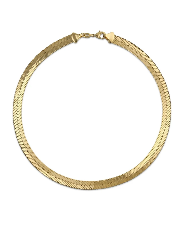 Bling Jewelry Flexible Flat Contoured Fit Collar Gold Tone Herringbone Snake Chain Omega Choker Necklace Flexible Contoured 15 Inch 5MM Wide