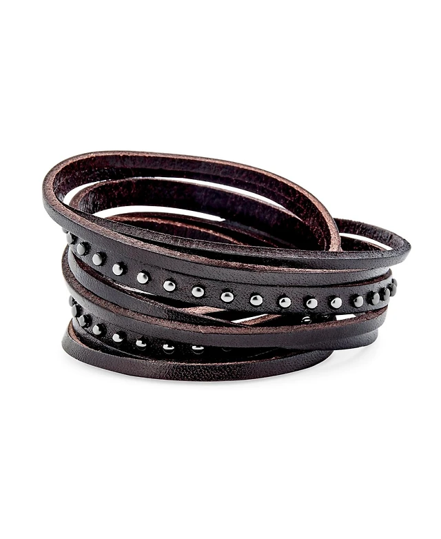 Bling Jewelry Hip Hop Punk Rocker Cuff Bracelet Metal Studded Rivets Multi-Layer Leather