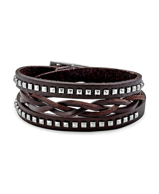 Bling Jewelry Hip Hop Punk Rocker Cuff Bracelet Metal Studded Rivets Wide Woven Leather
