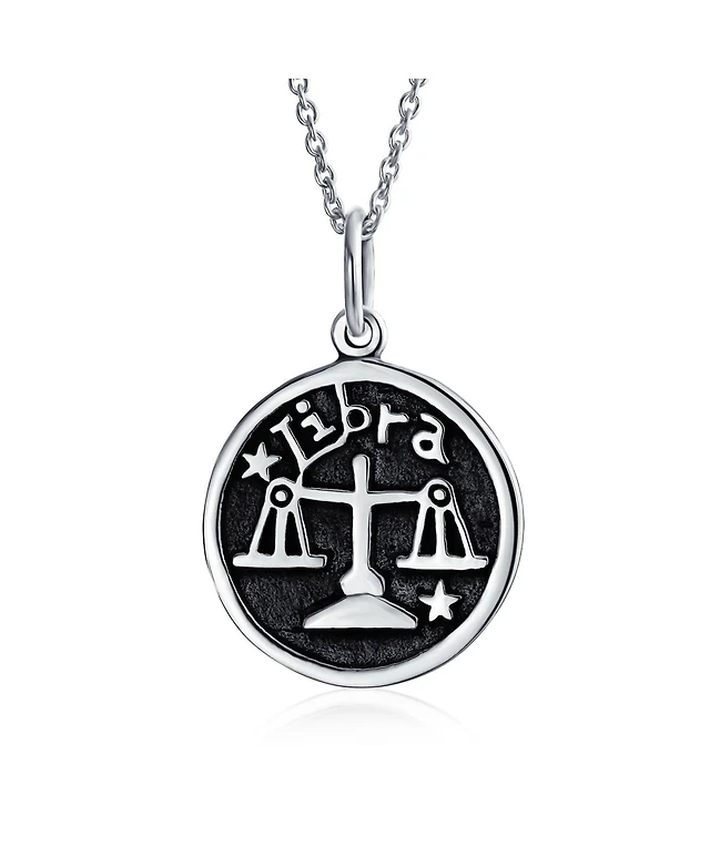 Bling Jewelry Libra Zodiac Sign Astrology Horoscope Round Medallion Pendant Necklace Antiqued Sterling Silver
