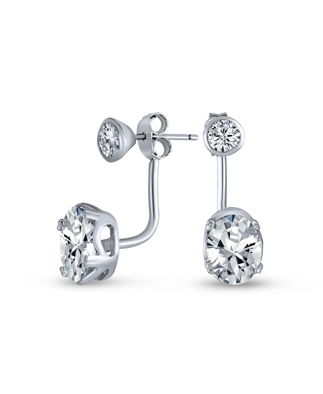 Bling Jewelry Modern Classic Minimalist Solitaire Cubic Zirconia Front Cz Back Ear Jackets Stud Earrings .925 Sterling Silver