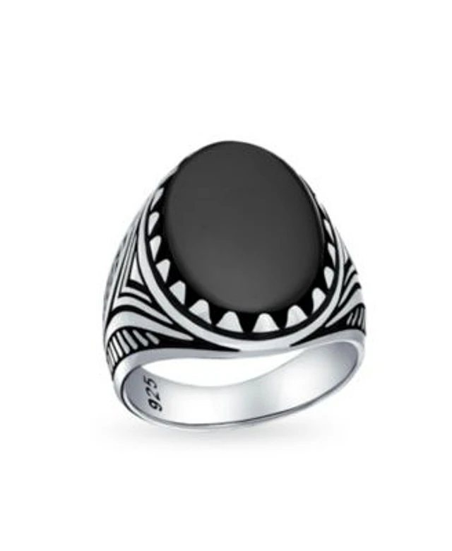 Bling Jewelry Brick Accent Statement Rectangle Natural Black Onyx Signet Ring