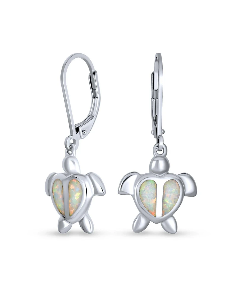 Bling Jewelry Nautical Dangle Synthetic Opal Heart Turtle Drop Earrings in Sterling Silver