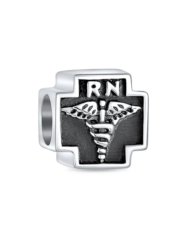 Bling Jewelry Nurse Nursing Rn Registered Caduceus Cross Shape Charm Bead Oxidized .925 Sterling Silver