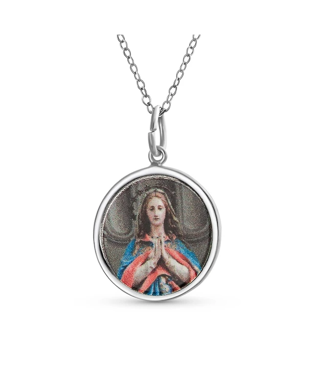 Bling Jewelry Oval Religious Medal Virgin Mary Pendant Necklace in Sterling Silver