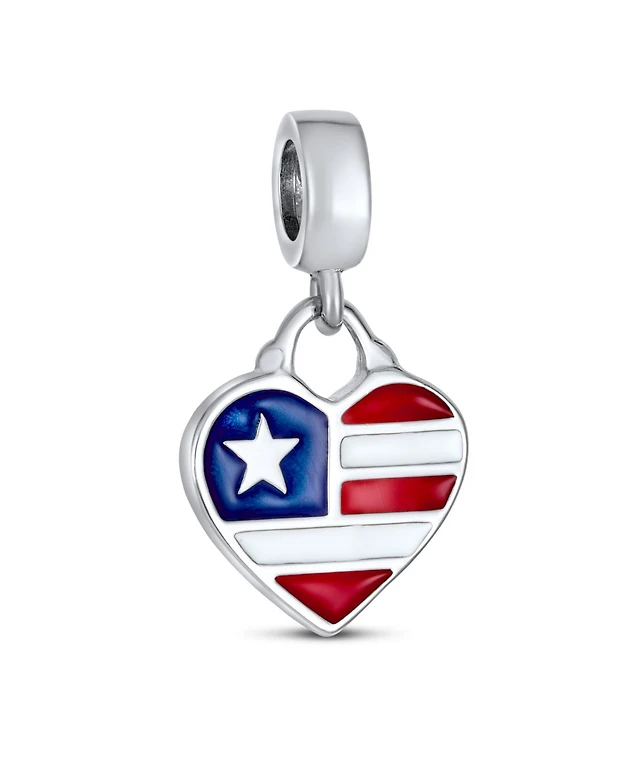 Bling Jewelry Patriotic Flag Heart Dangle Charm Bead Sterling Silver European Bracelet