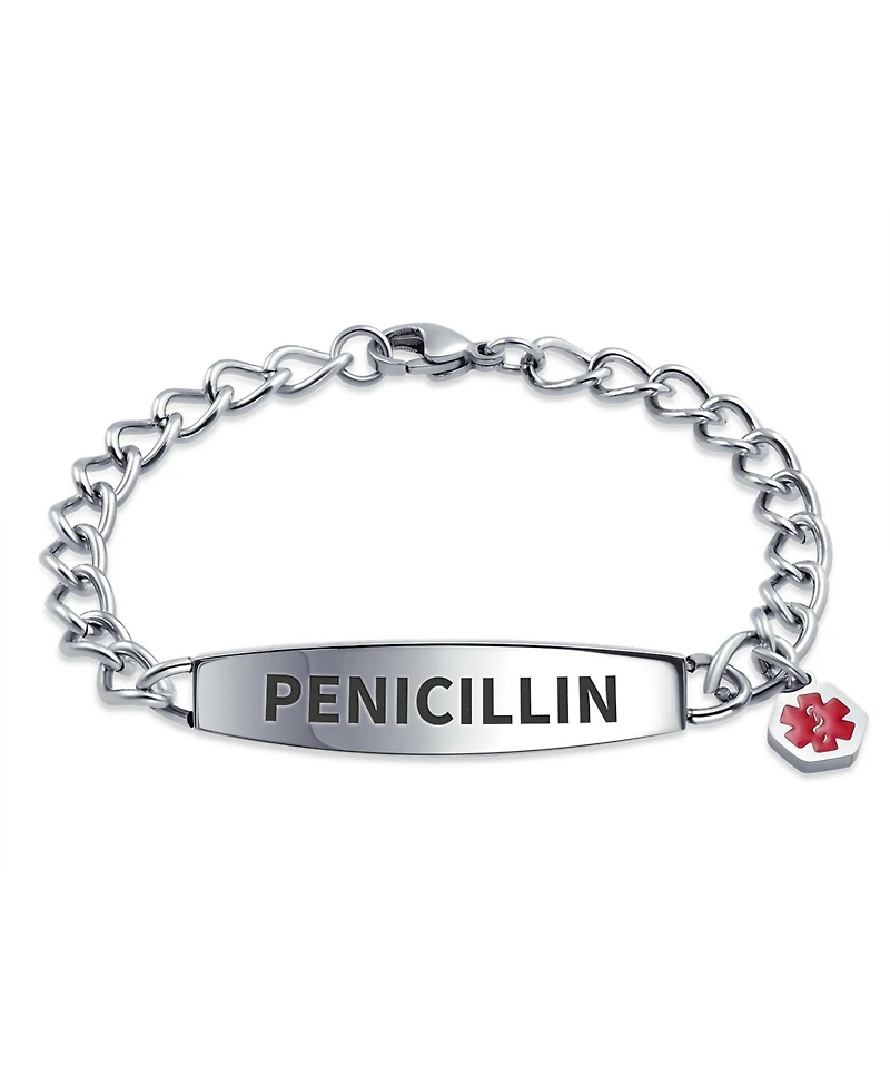 Bling Jewelry Penicillin Medical Identification Id Bracelet Miami Cuban Link Chain Stainless Steel 7.5 Inch