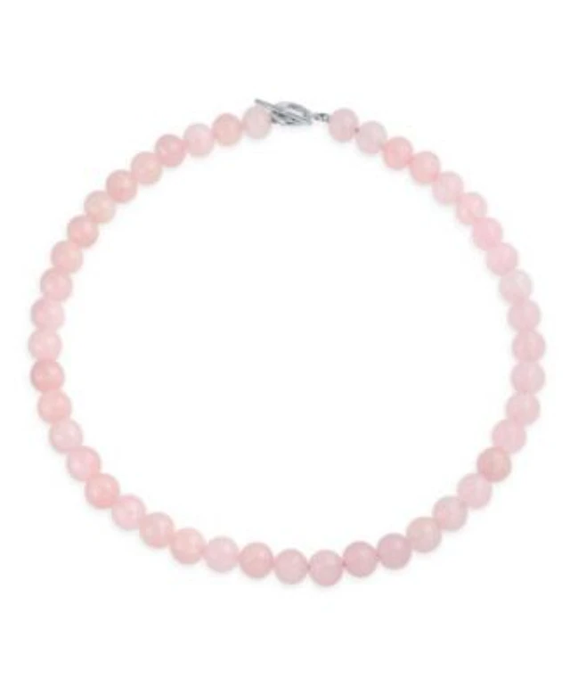 Bling Jewelry Plain Simple Classic Pale Pink Natural Rose Quartz Round 10mm Bead Strand Necklace For Women Silver Plated Clasp