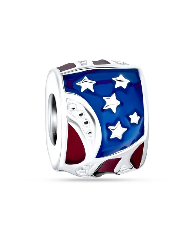 Bling Jewelry Red White Blue Stripe Holiday American Usa Patriotic Flag Star Charm Barrel Bead Sterling Silver Fits European Bracelet