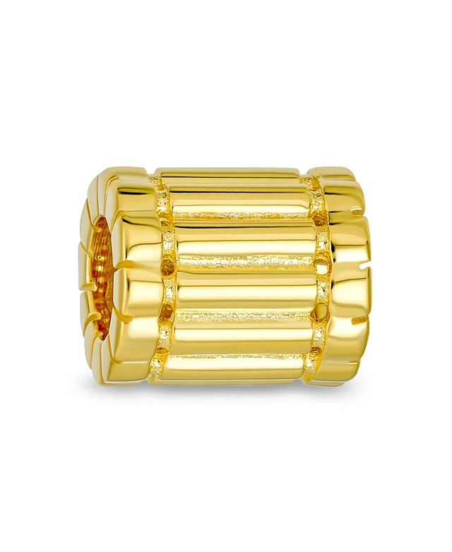 Bling Jewelry Ridged Grooved Stripe Barrel Spacer Bead Charm Gold Plated Sterling Silver Fits European Bracelet