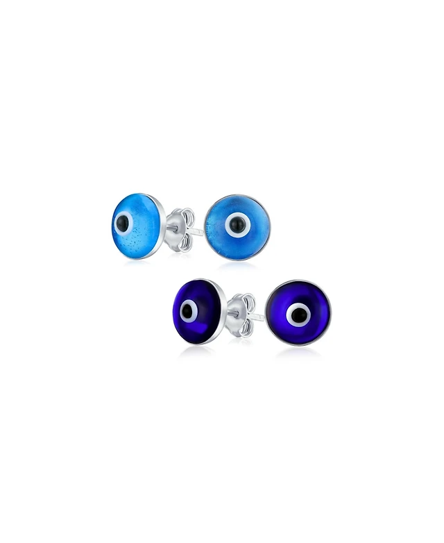 Bling Jewelry Set of 2 Spiritual Protection Evil Eye Stud Earrings Murano Glass Silver 9MM