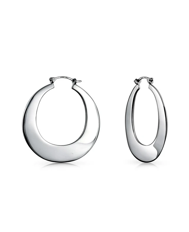 Bling Jewelry Large Oval Finish Tube Hoop Earrings Sterling Silver Hinged Notched Post 2 Inch