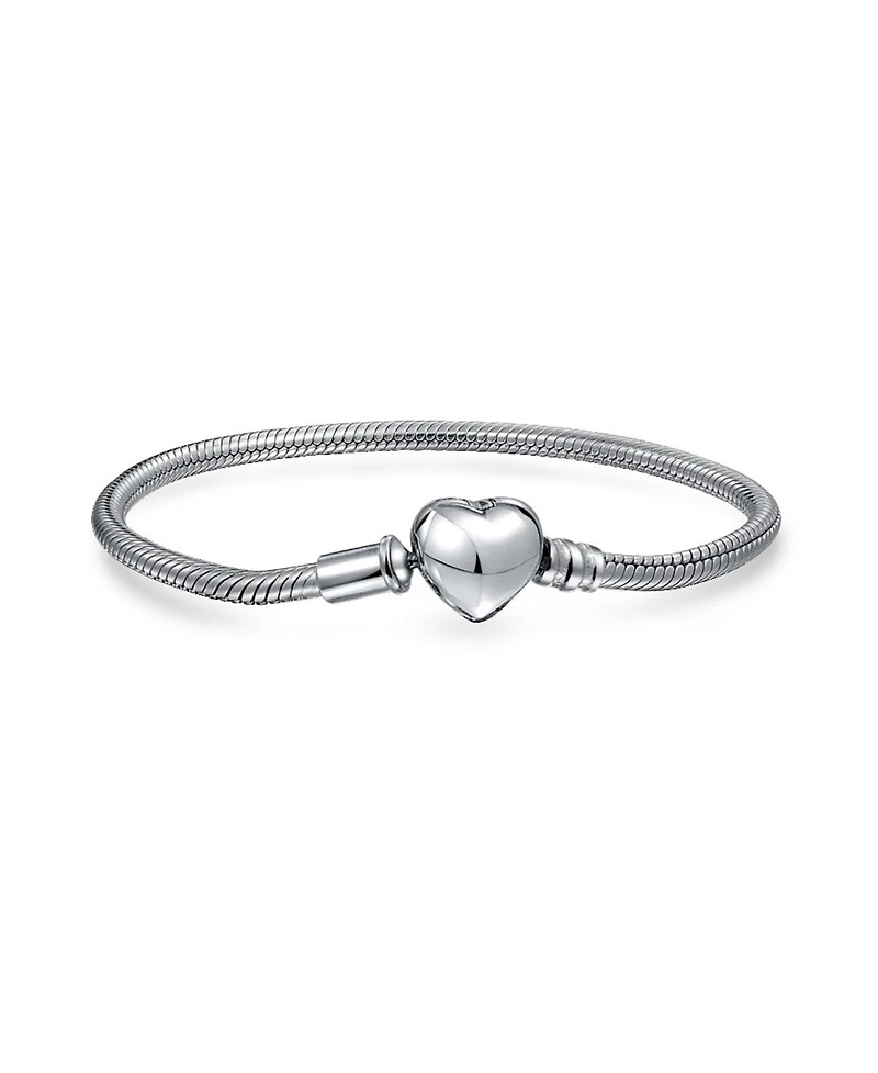 Bling Jewelry Snake Bracelet with Heart Clasp Fits European Beads 7 Inch